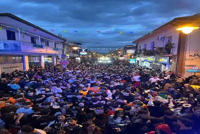Strade colme di persone ed animate con colori, musiche ed allegria