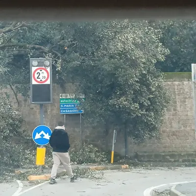 Crolla albero della Reggia e invade la strada: paura e traffico in tilt. FOTO