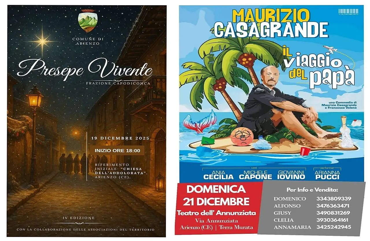 Il fine settimana proseguirà con un appuntamento di spessore, organizzato con il supporto della Commissione Cultura e della delegata Anna Maria Calcagno: domenica 21 dicembre, la Chiesa dell’Annunziata accoglierà Maurizio Casagrande, regista e protagonista dello spettacolo teatrale “Il viaggio del papà”. L’opera, capace di coniugare ironia e riflessione personale, arricchite dal tratto inconfondibile dell’artista napoletano, si configura come una proposta di qualità, pensata per coinvolgere un pubblico eterogeneo e per arricchire ulteriormente il calendario con un’esperienza a metà tra emozione ed intrattenimento. Seguirà un Natale tra recitazione e musica, con gli spettacoli pensati per le giornate del 26, 27 e 28 dicembre, in cui suonerà la Banda musicale Giuseppe Verdi e canterà Luigi Paolillo. I due eventi saranno intervallati dall’opera ‘A furia di ridere’, a cura dell’Associazione Muratterra. “L’Arienzo Christmas Village continua a rappresentare uno dei cuori pulsanti delle festività cittadine, un progetto culturale e comunitario che, grazie alla collaborazione tra Amministrazione Comunale, Pro Loco e altre realtà locali sta regalando alla cittadinanza settimane dense di gioia e condivisioni - ha dichiarato il primo cittadino. Il nostro progetto non si traduce in un mero festeggiamento, rappresentando un’opportunità per stare insieme, crescere come comunità e valorizzare il nostro territorio. Rinnovo, dunque, l’invito a prendere parte ai prossimi appuntamenti”.
