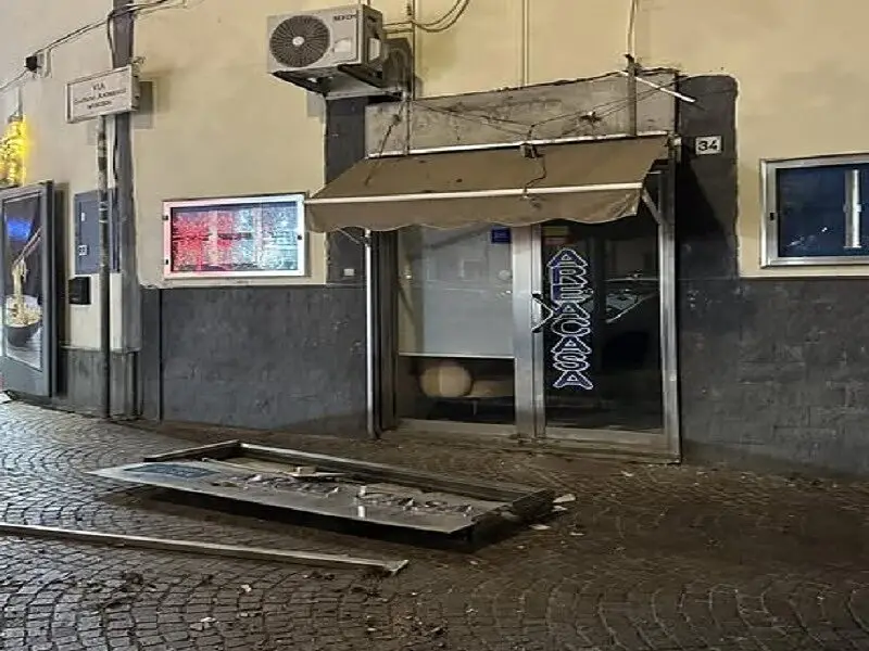 Durante i festeggiamenti, in via Gaetano Andreozzi, sono stati fatti esplodere dei petardi proprio vicino ad un’agenzia immobiliare. La potenza dell’esplosiva è stata tale da provocare ingenti danni all’ingresso. Addirittura l’esplosione ha causato il distacco dell’insegna sulla porta d’ingresso.