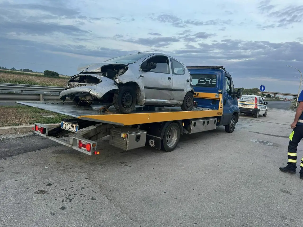 Sul posto a quel punto giungeva la Polizia Municipale ed il locale nucleo di Protezione Civile che vigilavano sulle operazioni di rimozione del veicolo.