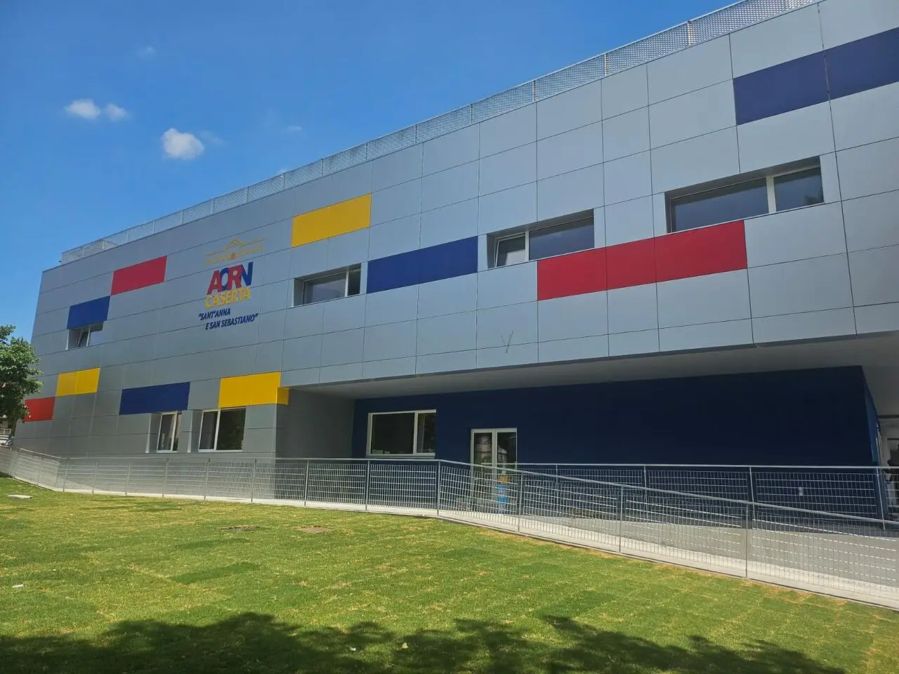 Il neonato blocco operatorio è stato realizzato, su una superficie di 2400 mq, al primo piano di un edificio a due piani costruito ex novo, a integrazione dell’edificio N, nell’ambito di un intervento di edilizia sanitaria finanziato con i fondi ex art. 20 L. 67/88. Un corpo di fabbrica, al cui piano terra, ultimati i lavori di natura impiantistica, traslocherà il settore dei laboratori dell’AORN di Caserta: Laboratorio di Analisi con annesso Corelab, Microbiologia e Virologia, Laboratorio di Genetica Medica.