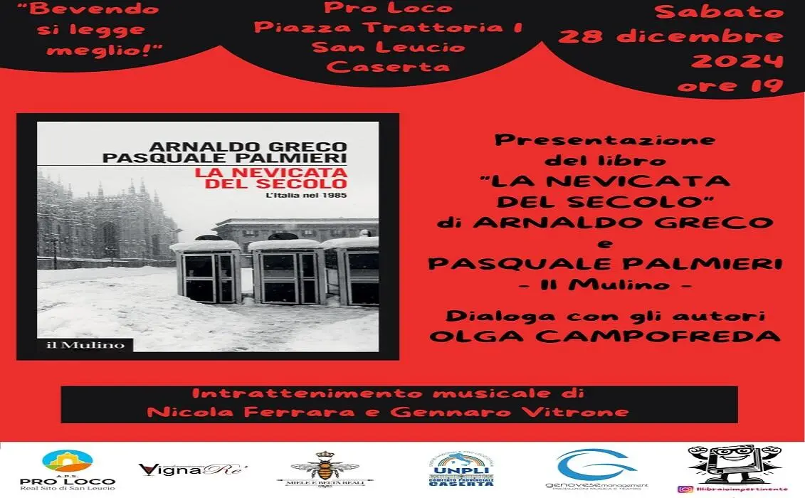 La serata porterà il pubblico indietro nel tempo, all'inverno del 1984, quando un'insolita ondata di freddo ricoprì d'insolita neve luoghi insospettabili in Italia, consegnandoci il ricordo de "la nevicata del secolo". Nel libro, Arnaldo Greco e Pasquale Palmieri accompagnano i lettori in un viaggio tra ricordi e frammenti di un’Italia che, sotto la neve, sembra sospendere la sua corsa verso la modernità, celando profonde crisi sociali ed economiche. Arnaldo Greco, giornalista, scrittore e autore televisivo di Che tempo che fa, e Pasquale Palmieri, docente di Storia moderna all’Università di Napoli Federico II, dialogheranno con Olga Campofreda, critica letteraria e autrice del romanzo Ragazze perbene, recentemente tradotto in tedesco. La serata sarà impreziosita dalle performance musicali di Nicola Ferraro e Gennaro Vitrone.