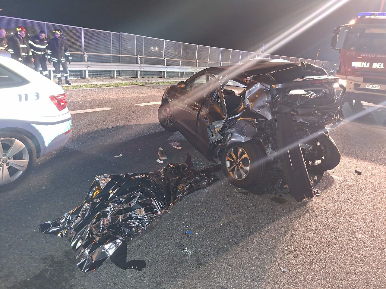 E' stata comunque una notte di sangue quella tra sabato e domenica sulla Domizianaa al chilometro 38 della Domiziana intorno alle 00.45. Sul posto pattuglie della polizia stradale di Cellole composte dal Sov. De Iorio e dall’A.C. Frattasio, cordonati dal Comandante del distaccamento dall’Isp. Bonaccio..