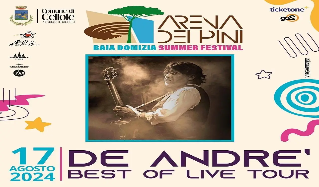 CELLOLE - Il Comune di Cellole è lieto di annunciare che l’Arena dei Pini di Baia Domizia sarà una delle prestigiose tappe del De André Best of Live Tour, il concerto si terrà il 17 agosto nell'ambito dell’Arena dei Pini Summer Festival 2024.