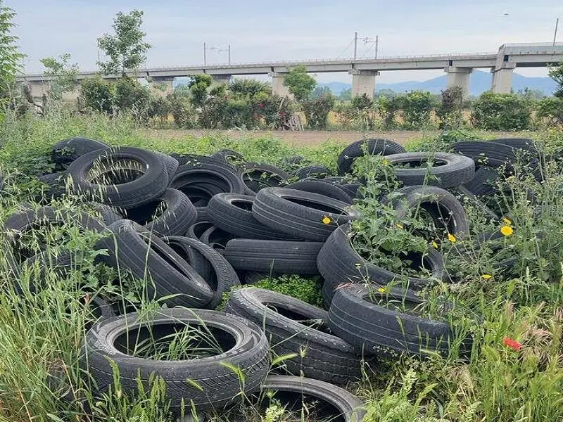 All'atto dell'ispezione visiva gli pneumatici di varie marche e misura si presentavano danneggiati e usurati. Il pericolo con la presenza dei pneumatici è ovviamente quello degli incendi che potrebbero causare gravi danni all’aria e al terreno.