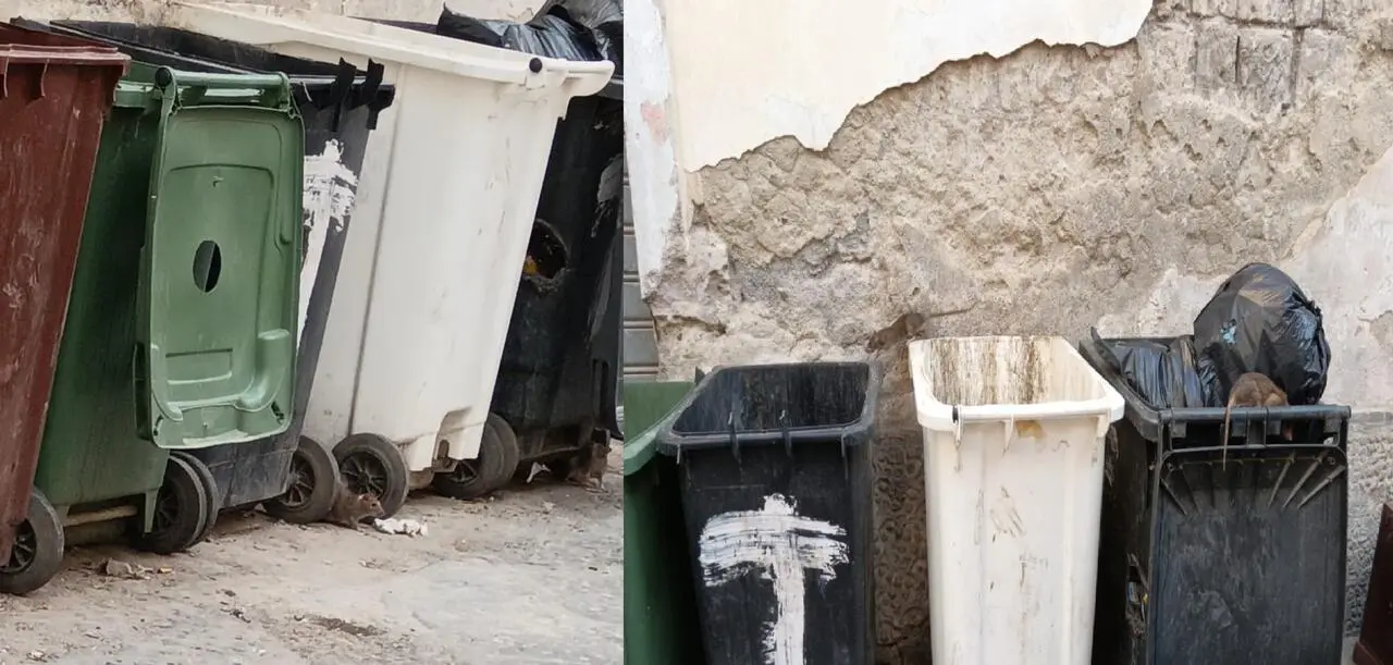 Degrado in città, topi tra i bidoni vicino all'istituto scolastico