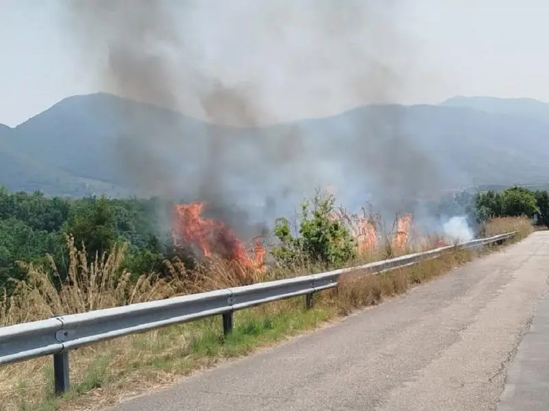 Incendio a Sessa, a fuoco la vegetazione ai margini della strada