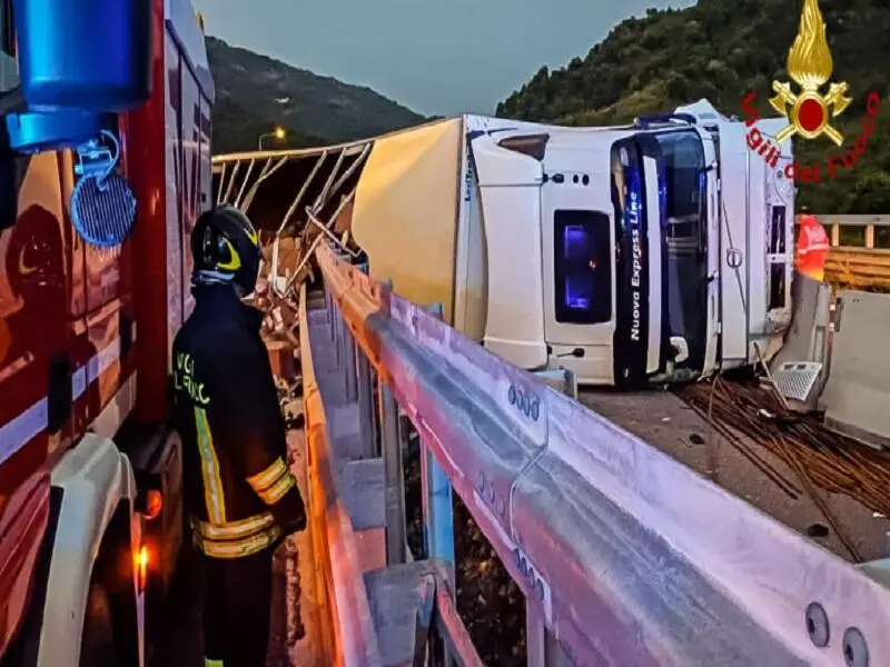 Incidente sull'A1, camion si ribalta dopo aver sbandato: ferito il conducente