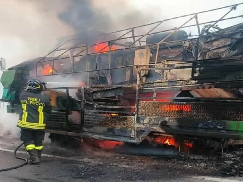 Il conducente al primo pericolo è riuscito a scendere dal mezzo