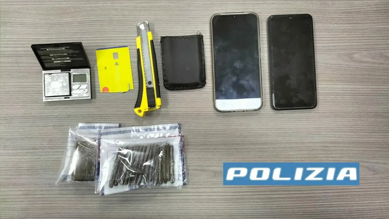 Perquisito, sono state trovate in una tasca del jeans 15 stecche di “hashish”. Presso la sua abitazione, dietro un pensile del bagno, è stato rinvenuto un panetto della stessa sostanza, oltre a materiale utilizzato per il confezionamento. La droga, del peso di circa 100 grammi, è stata sequestrata, insieme al monopattino utilizzato per le consegne.