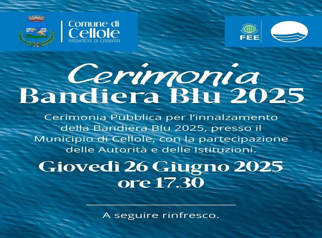 CELLOLE - Il Comune di Cellole è lieto di annunciare la cerimonia ufficiale di innalzamento della Bandiera Blu 2025, simbolo di eccellenza delle spiagge di Baia Domizia Sud e Baia Felice e del territorio cellolese.
