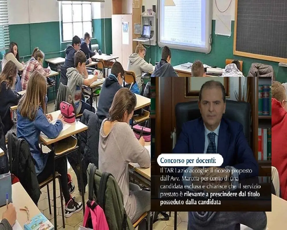 Orbene, il Tar Lazio, Sezione Terza bis, condividendo le argomentazioni difensive, addotte dall’Avv. Pasquale Marotta per conto della candidata, ha accolto il ricorso affermando il seguente principio di diritto ….” “Dirimente, ai fini della risoluzione della controversia, è la circostanza che il mancato possesso di un valido titolo di accesso all’insegnamento sulla classe di concorso A010 sia stato rilevato dall’articolazione regionale del Ministero intimato dopo diversi anni, nel corso dei quali la stessa amministrazione ha riconosciuto detto titolo di studio valido ai fini dell’insegnamento, tanto che la ricorrente, come sopra anticipato, è stata iscritta per diverso tempo nelle Graduatorie provinciali per le supplenze, conseguendo, per l’effetto, una apprezzabile esperienza di insegnamento in qualità di docente, pur precaria.