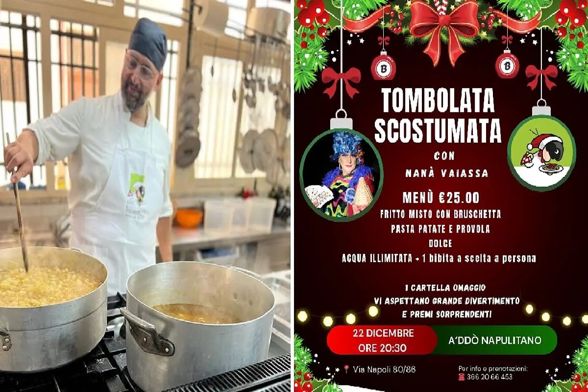 E’ proprio questo gioco il mordente di una serata all’insegna dell’allegria e del buon cibo organizzata dal ristorante pizzeria “Addò Napulitano” di via Napoli a Maddaloni. Lo chef Cosimo Marino, oltre a scaldare i fornelli, è pronto anche a regalare ai propri ospiti uno spettacolo particolare e piccante con la “Tombola Scostumata con Nanà Vaiassa” che si svolgerà lunedì 22 dicembre alle ore 20:30.
