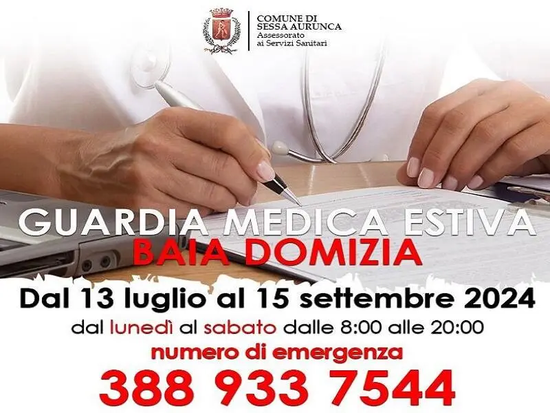 - a Sessa Aurunca, via dei Bossi (condominio Diamante), sarà attiva una postazione di guardia medica estiva;