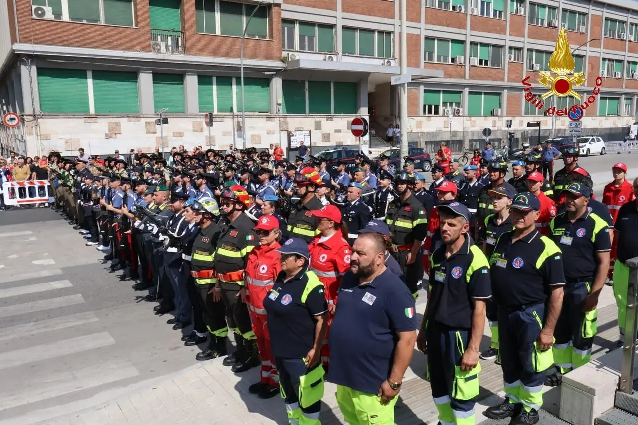 Contemporaneamente, in Piazza Vanvitelli, i Vigili del Fuoco hanno simbolicamente steso il tricolore italiano sull’edificio della Prefettura, rinnovando lo spirito di unità e coesione nazionale.