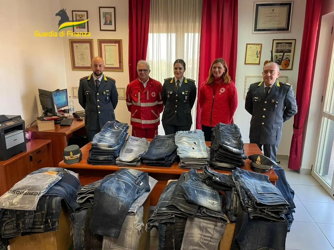 La Guardia di Finanza dona pantaloni contraffatti alla Croce Rossa