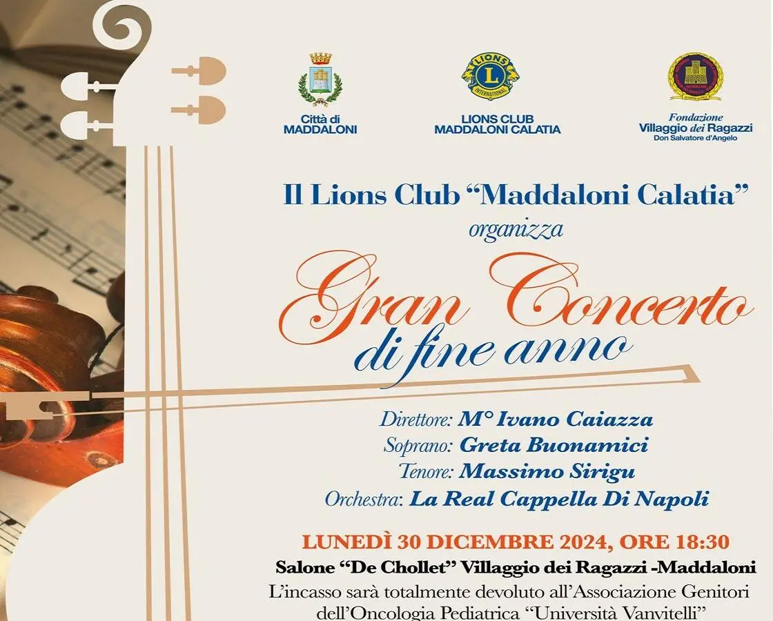 Lunedì 30 dicembre, a partire dalle ore 18:30, nella sala “Chollet” del Villaggio dei Ragazzi di Maddaloni, si svolgerà il Gran Concerto di Fine Anno con l’orchestra della “Real Cappella di Napoli” diretta dal maestro Ivano Caiazza, direttore d’orchestra e musicologo di fama che vanta collaborazioni anche con il Teatro San Carlo di Napoli.