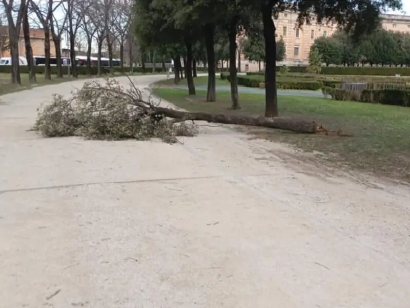 Il Casertano bersagliato dal vento, cadono gli alberi davanti alla Reggia