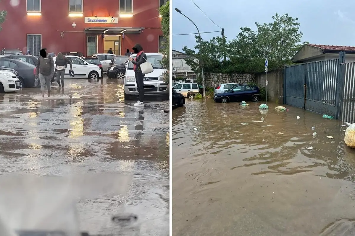 In particolare, a causa della pioggia intensa, si è allagato il piazzale antistante la stazione ferroviaria. Un vero e proprio lago si è formato proprio davanti all’ingresso, con l’acqua che ha lambito anche i locali interni. Grandi disagi per i pendolari che hanno dovuto farsi strada in mezzo all’acqua e a sacchetti di rifiuti.