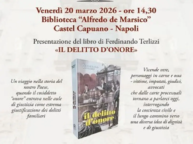 NAPOLI/CASERTA - Venerdì 20 marzo 2026 alle ore 14.30, presso la Biblioteca “Alfredo De Marsico” di Castel Capuano a Napoli, sarà presentato il volume Il delitto d’onore del giornalista e scrittore Ferdinando Terlizzi, pubblicato da Giuseppe Vozza Editore.