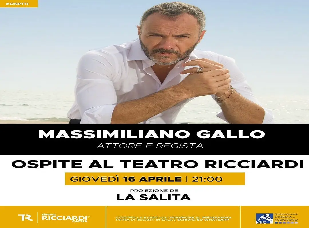 CAPUA - Il Teatro Ricciardi di Capua è pronto ad accogliere uno dei volti più intensi e amati del cinema e del teatro italiano: Massimiliano Gallo, attore e regista di grande sensibilità artistica, sarà ospite giovedì 16 aprile alle ore 21:00 per una serata speciale all’insegna del cinema e dell’incontro diretto con il pubblico.