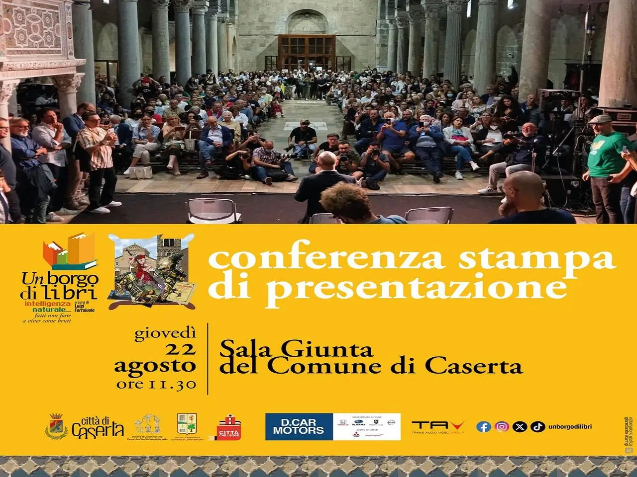 CASERTA - Domani, giovedì 22 agosto alle ore 11,30, presso la Sala Giunta del Comune di Caserta, ci sarà la conferenza stampa durante la quale verrà illustrato il cartellone definitivo di “Un Borgo di Libri”. Alla presentazione della settima edizione del festival saranno presenti il Sindaco di Caserta, Carlo Marino, e l’ideatore e Direttore della rassegna, Luigi Ferraiuolo.