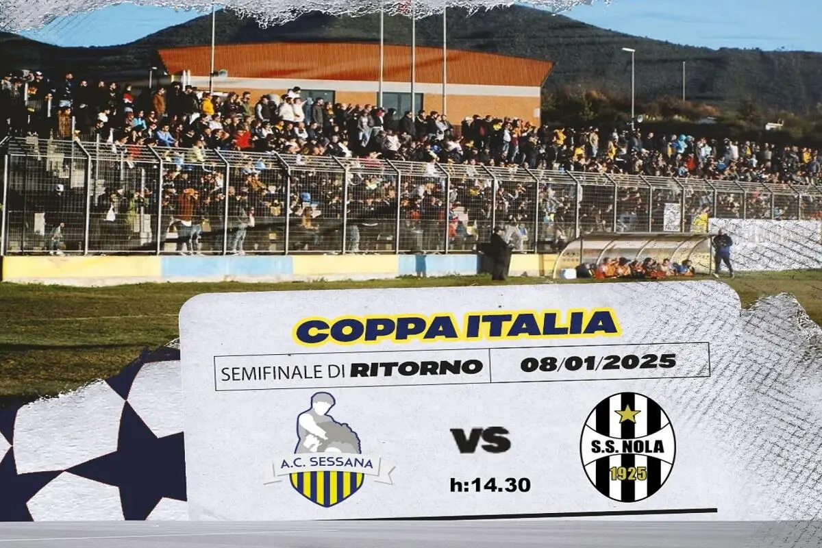 I gialloblù aurunci in questa gara di ritorno, sono rimasti in partita contro i quotatissimi avversari per quasi ottanta minuti, prima di cedere nello scorcio finale. Gli ospiti allenati dal trainer boemo Karel Zeman, hanno così bissato il successo dell'andata, quando si erano imposti con il risultato di 2 - 1 sul terreno amico dello "Sporting Club". La Sessana ha provato a realizzare il goal che avrebbe portato in parità le sorti della qualificazione, ma il Nola ha mostrato di essere compagine solida, esperta e di notevole caratura tecnica, andando vicina al gol al 18' con un bel tiro di Melillo neutralizzato in bello stile dal portiere aurunco Scolavino. Nella prima frazione di gara il match non si sblocca. Nel secondo tempo quando le lancette indica il 55', il Nola va vicino alla marcatura con una bella semi rovesciata di Varsi che però fa la barba alla traversa. La Sessana risponde al 60' con Cavaliere su punizione ma l'estremo difensore Moccia è bravo a deviare la sfera in corner. Sul ribaltamento di fronte il Nola va vicinissimo al gol: contropiede di Cozzolino, assist in area per Varsi che però trova lo specchio della porta chiuso dall'uscita a valanga del guardiano gialloblù Scolavino. Il Nola insiste e la sblocca al 79': palla in profondità per Filosa che si incunea in area e tira, Scolavino respinge, la sfera va sui piedi di Varsi e per il numero 10 nolano è facilissimo spingerla in rete. Al 91', il Nola chiude definitivamente il match : corner dalla destra e inzuccata vincente di Liccardi. Passano altri tre minuti e i bianconeri ospiti siglano la terza rete: uno-due in area piccola, palla a Dell'Orfanello che insacca sotto la traversa. Al triplice fischio del direttore di gara Marco Castello di Ercolano, festeggia il Nola che raggiunge la finale nella quale sfiderà la compagine della città salernitana di Castellabate, ossia la Polisportiva Santa Maria Cilento del patron Francesco Tavassi. Infine va stigmatizzato il comportamento dei tifosi del Nola, quest'ultimi si abbandonavano nell'euforia dei festeggiamenti per il centenario della fondazione della loro squadra del cuore, all'accensione ed al lancio di fumogeni sul tappeto verde di gioco, circostanza sulla quale le forze dell'ordine presenti in massa nell'impianto della città di Sessa Aurunca avrebbero dovuto intervenire preventivamente con controlli capillari che puntualmente vengono svolti nella tribuna riservata ai supporter della Sessana.