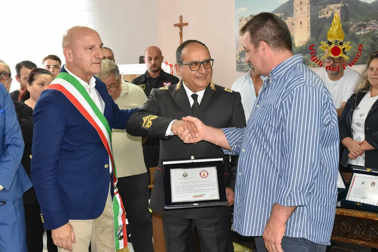 Il riconoscimento alla guida dei vigili del fuoco casertani alla presenza dei familiari delle vittime