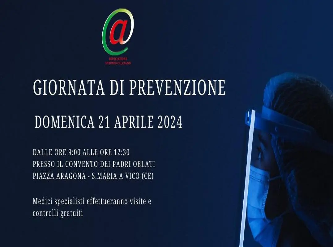 SANTA MARIA A VICO – Una giornata dedicata alla prevenzione. E’ questo il tema dell’iniziativa promossa dall’associazione “Antonio Calcagno” per domenica 21 aprile. Nel convento dei padri Oblati in piazza Aragona a Santa Maria a Vico medici specialisti effettueranno visite e controlli gratuiti ai cittadini.