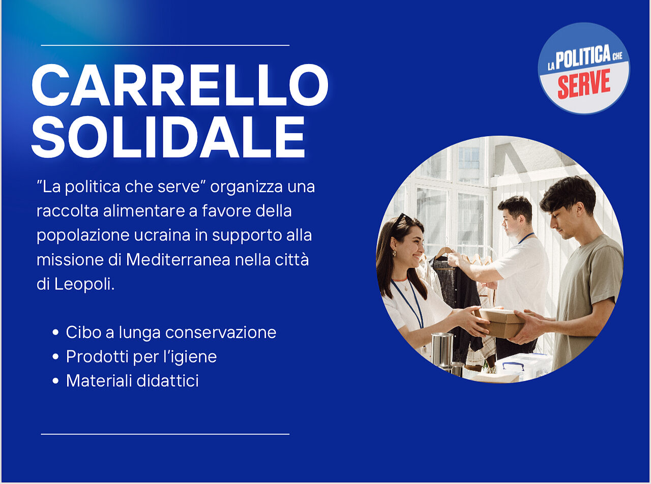 AVERSA - Il gruppo La Politica Che Serve (LPCS) annuncia l’avvio di una nuova iniziativa di solidarietà in collaborazione con Mediterranea Saving Humans, in occasione della partenza della 22ª Missione di rifornimento diretta in Ucraina, prevista per la fine di novembre.