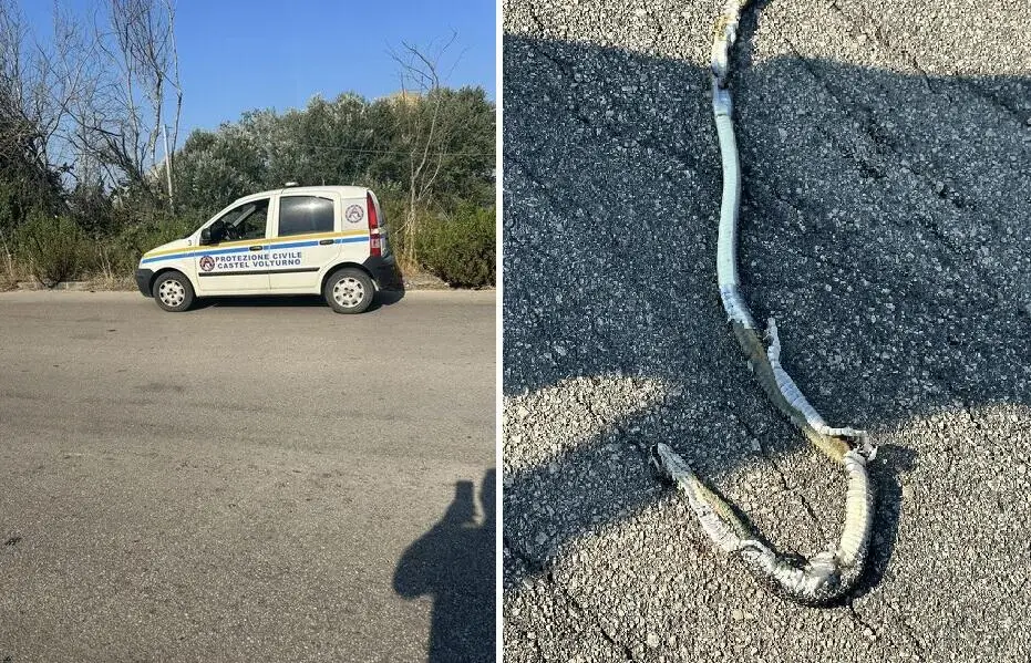Nei pressi dell’istituto comprensivo “Castel Volturno Centro”, i volontari del locale nucleo di Protezione Civile hanno trovato un serpente morto nel bel mezzo della carreggiata.