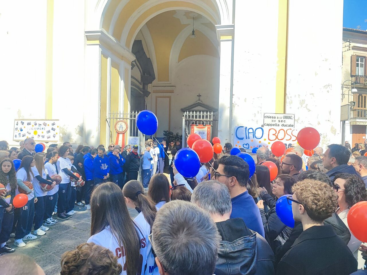 Le compagne di squadra indossano una maglia numero 30 dedicata a lei con la scritta “Ciao Boss”. Gli occhi lucidi, le mani intrecciate, lo sguardo fisso verso quella bara bianca che sembra troppo piccola per contenere un’assenza così grande. Ci sono gli amici del liceo Nino Cortese, i professori, chi l’ha conosciuta tra i banchi e ne ricorda l’impegno, la gentilezza, quel sorriso che non mancava mai.