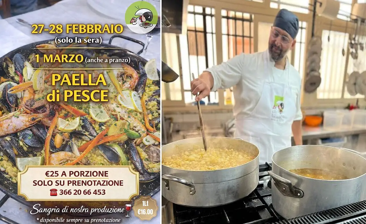 Sono tre infatti i giorni che lo chef Cosimo Marino, titolare dell’attività di ristorazione di via Napoli, ha destinato alla preparazione di questo gustoso e succulento piatto: il 27 e 28 febbraio, ed il 1 marzo. Per i primi due le prenotazioni saranno disponibili solo per la cena, mentre il 1 marzo anche a pranzo. Il costo a piatto è di 25 euro. Oltre alla paella, esclusivamente di pesce, sarà possibile acquistare anche la sangria, al prezzo di 16 euro a litro. Per prenotare basta chiamare il 366 20 66 453.
