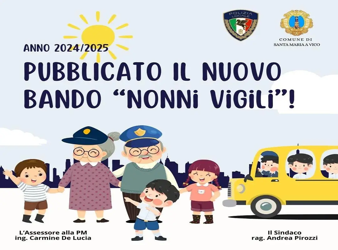 SANTA MARIA A VICO - Il Comune di Santa Maria a Vico rinnova il servizio “Nonni Vigili” per l'anno scolastico 2024/2025, offrendo ai cittadini anziani residenti l'opportunità di vigilare all'entrata e all'uscita degli alunni delle scuole dell'obbligo e nelle piazze del paese.