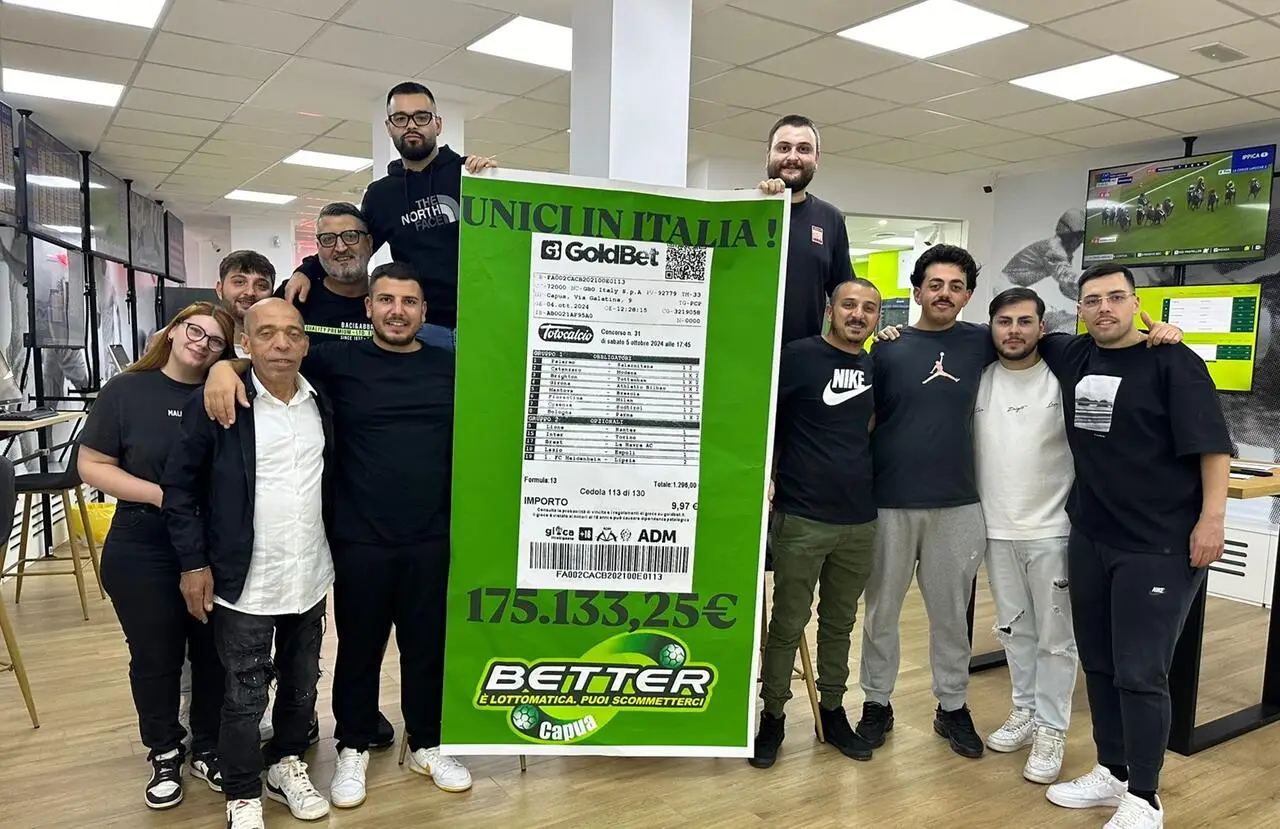 La schedina in questione è l’unica vincente su tutto il territorio nazionale ed è figlia di un sistema da poco meno di 1.300 euro partorito dallo staff di una delle tre agenzie di Capua del giovane imprenditore Giuseppe Gragnaniello.