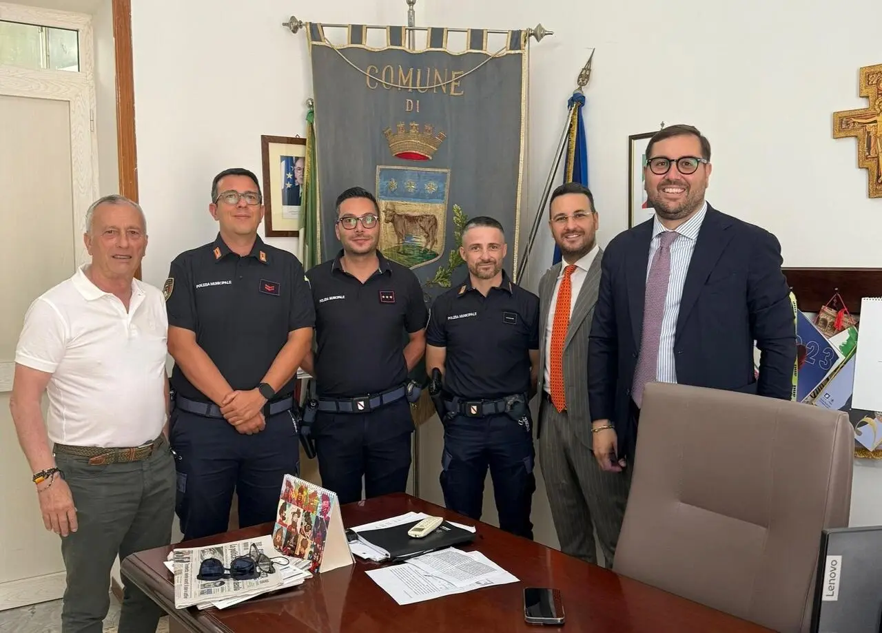 Ieri mattina il sindaco Vincenzo D'Angelo, l'assessore al ramo Errico Scala e il presidente dell'Assise Michele Graziano hanno accolto in Comune - alla presenza del comandante Giovanni Carrillo - i due nuovi caschi bianchi, che già hanno lavorato sul territorio e che rafforzeranno l'organico locale.