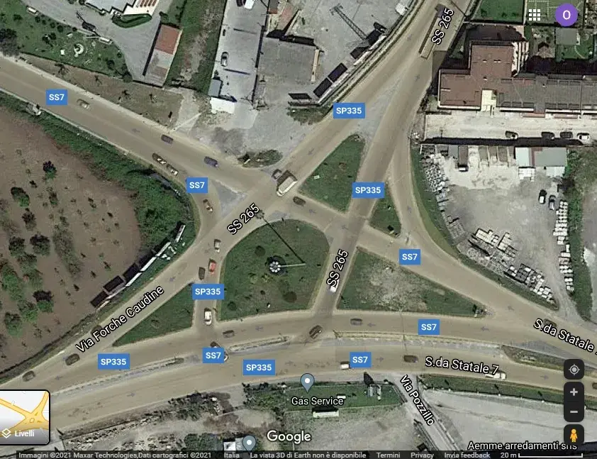La intersecazione di Via Caudina-Via Forche Caudine- Strada Statale 265-Strada Statale 7 e Strada Provinciale 335, strade di diverse appartenenze e, forse, è proprio qui dove nasce il problema, perché quando ci sono troppi galli a cantare non fa mai giorno. Eppure, anni fa, furono istituite le amministrazioni decentrate, sia Provinciali che Regionali, con l’auspicio di avvicinare maggiormente il cittadino coi suoi bisogni alle istituzioni; ma visto il palese e tanto discusso fallimento, giunge facile suggerire il rafforzamento dei poteri alle Amministrazioni dei Comuni.