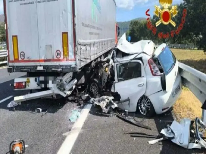 Si tratta di un grave incidente. Uno scontro che ha coinvolto un’auto, una Fiat Punto, ed un camion. La dinamica è ancora da ricostruire, ma ad avere la peggio è stata l’auto che è rimasta schiacciata tre il camion ed una piazzola di sosta.