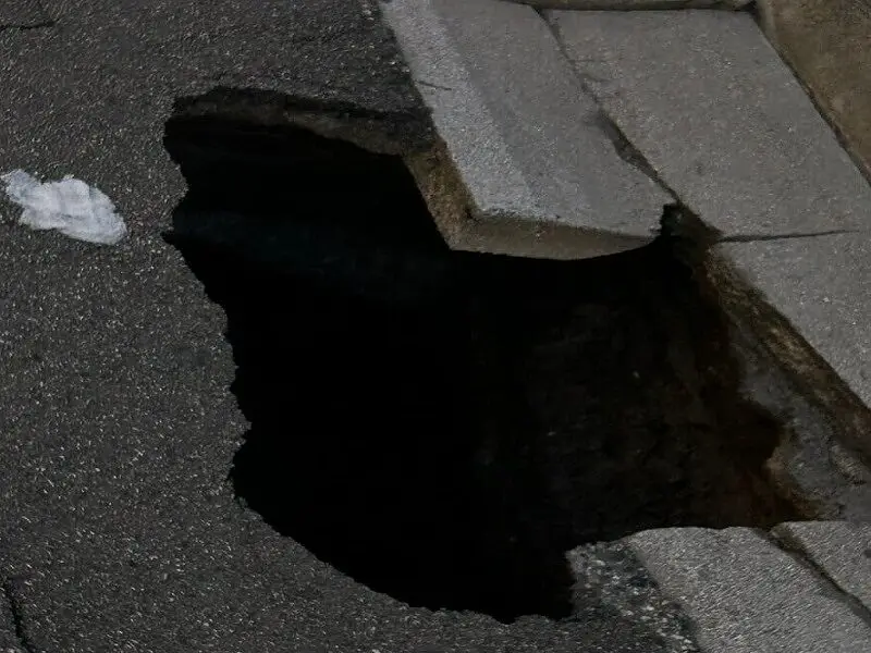 Paura a Mondragone, si apre voragine nell'asfalto: vigili del fuoco sul posto