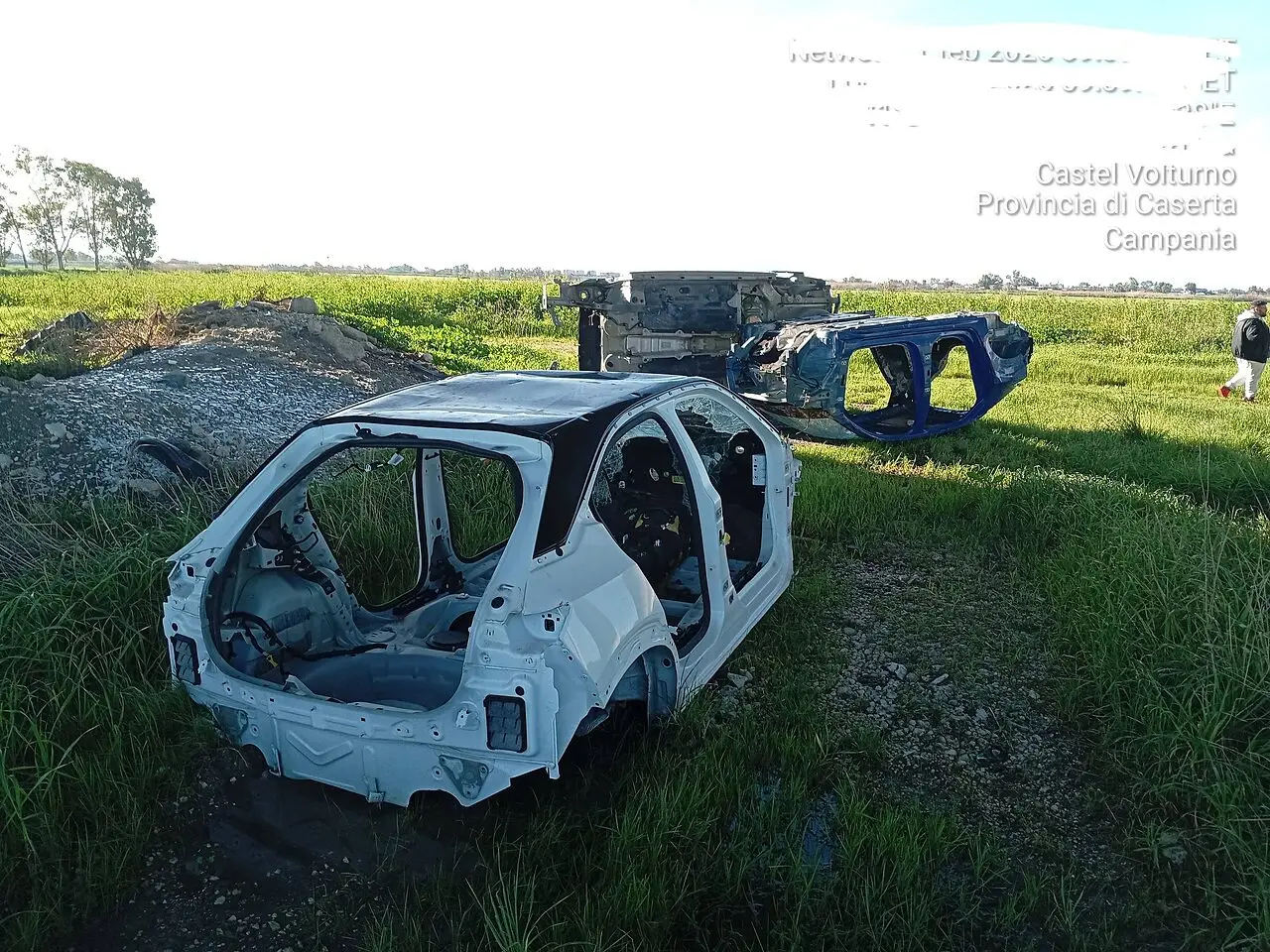 Uno degli ultimi siti colpiti è stato scoperto domenica scorsa nelle campagne di Castel Volturno. Proprio nell’agro infatti venivano ritrovate ben 15 carcasse d’auto, veicoli prima probabilmente rubati e poi cannibalizzati delle parti che si vendono facilmente sul mercato nero.