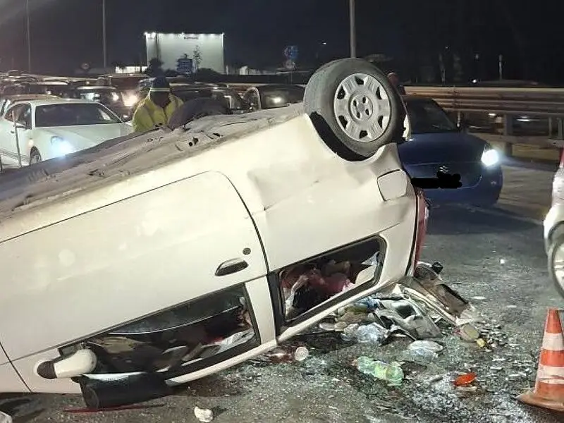 Auto si ribalta e colpisce altre tre vetture, 8 feriti: tra loro anche bambini