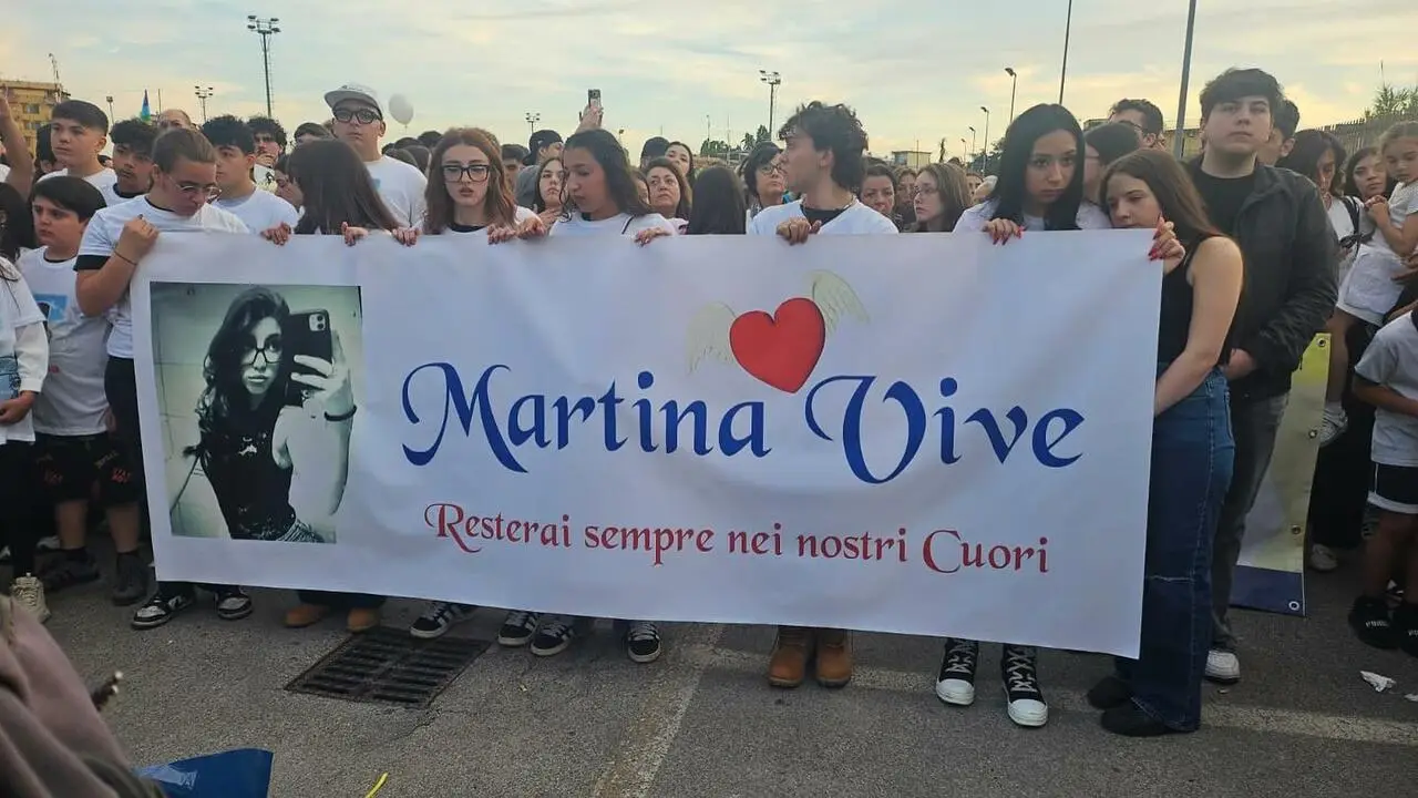 Tra i partecipanti anche gli studenti dell’Istituto Superiore “A. Torrente” di Casoria, frequentato da Martina, accompagnati dalla dirigente Annamaria Orso. Il corteo è giunto fino allo stadio Moccia, vicino al casolare dove è avvenuto l’omicidio, dove si è tenuto un lancio di palloncini bianchi. I ragazzi hanno intonato a gran voce: «Martina vive».