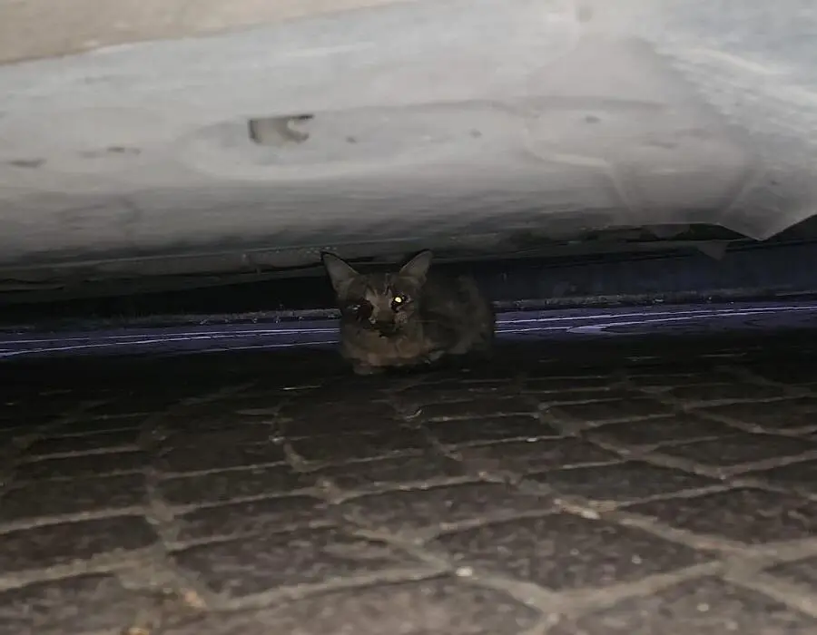 Il felino ha trovato rifugio sotto una macchina: si pensa all'azione di giovani scellerati