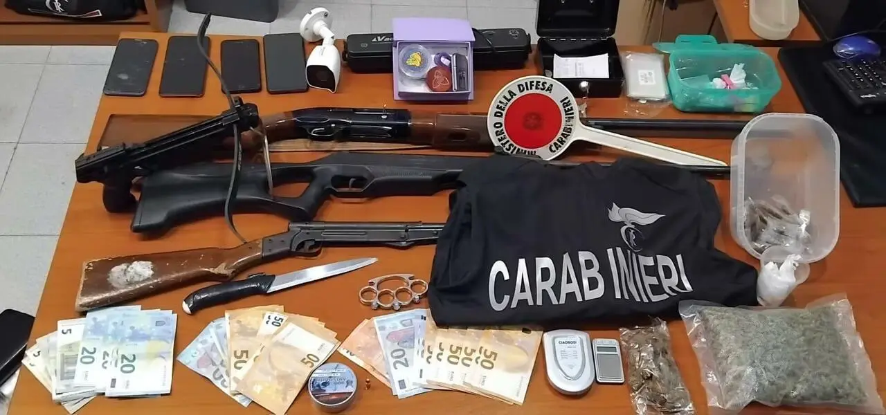 Sequestrate dai militari stupefacenti, denaro, una pistola balestra e tre fucili