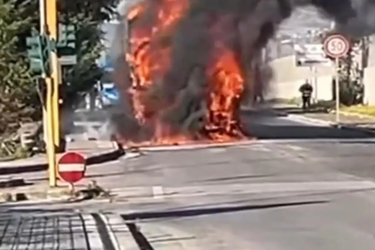 Al semaforo sull’arteria principale un camion ha preso improvvisamente fuoco. Le cause del incendio sono ancora del tutto da chiarire. Le fiamme in poco tempo hanno avvolto il mezzo.