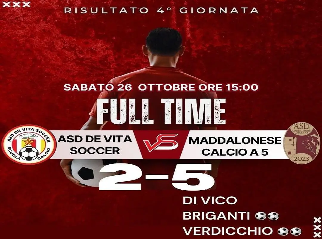Calcio a 5, la Maddalonese travolge 5-2 gli "stregoni" del De Vita Soccer