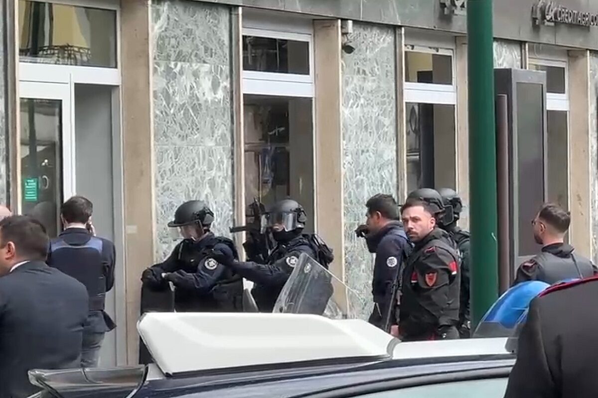 La banda composta presumibilmente da 5 persone aveva fatto irruzione in una filiale del Cre'dit Agricole al Vomero poco prima delle 13. Scatta la trattativa per liberare i prigionieri poi, poco prima dell'arrivo degli specialisti del gis dell'Arma per le incursioni, la fuga attraverso un cunicolo della rete fognaria col bottino con particolari degni di un film d'azione. I malviventi dopo l'irruzione si erano barricati con 25 ostaggi tra clienti e personale presente.