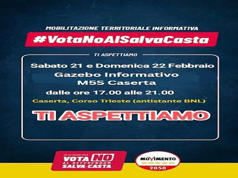 CASERTA - Il Gruppo Territoriale del Movimento 5 Stelle di Caserta annuncia la sua campagna cittadina a partire da questo weekend.