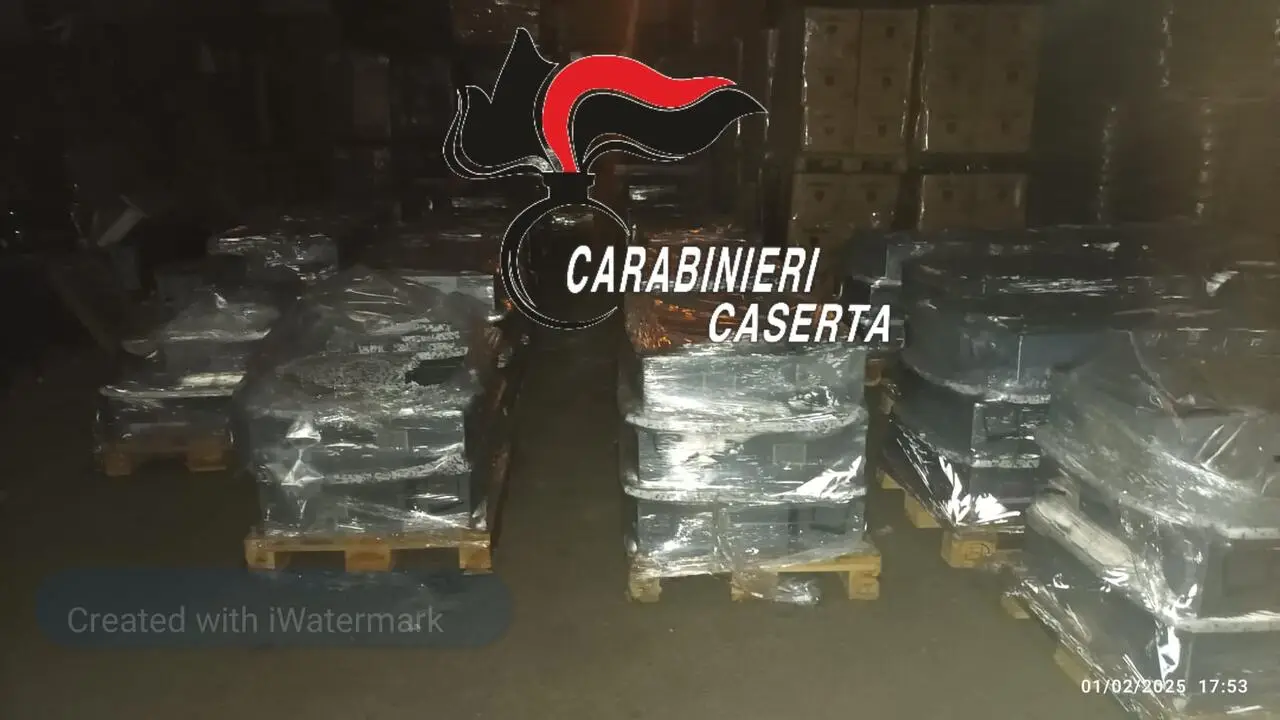 FRIGNANO/CASTEL VOLTURNO – Erano ancora accatastate sui bancali le 596 batterie per autovetture e mezzi pesanti, oggetto di furto, rinvenute dai carabinieri in un deposito a Frignano (CE).